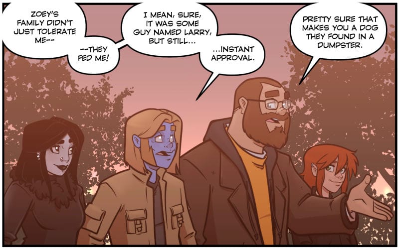 I can’t change the way I do Zombie Roomie, in my head overnight, to do what I’m doing with Club Pink Taco. It would be ‘wrong’ for the characters and disrespectful to them to gut their story from the updates. Club Pink Taco is much more episodic and you can dip in and just enjoy what’s presented that day without needing to know the characters and their troubles.