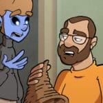 The titular zombie roommate, George Agnew is undead, awkward, and doing his best to keep it together– literally. He’s in an “it’s complicated” relationship with Zoey, which is impressive for someone who technically doesn’t have a pulse. George co-manages Got Issues?, the comics and gaming store at the mall, where he’s a fixture of geek culture and occasional workplace chaos. Despite being a zombie, he’s got a big heart (figuratively), a nervous stomach (ironically), and a deep desire to be seen as more than just a walking corpse. He just wants love, friendship, and maybe a little less brain-themed potluck at dinner.