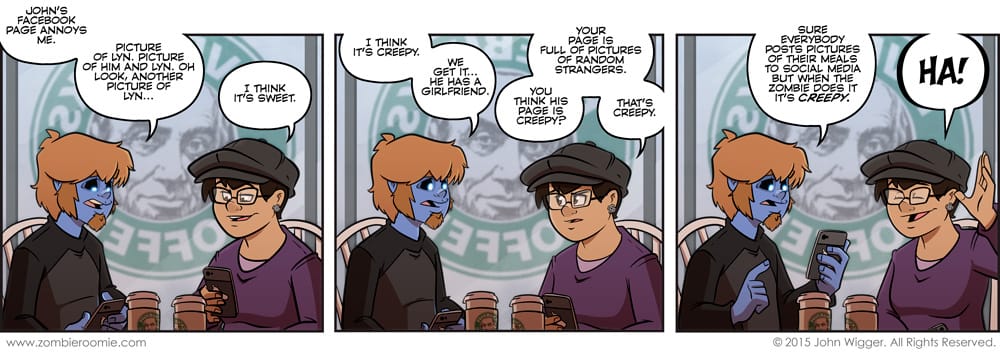 I wasn't ready for either arc when I sat down to do a comic so I did a one off instead. I don't know if I've done a strip where George and Lizzy were the only ones in it for the entire strip. I remember one where they were both putting on nigh mask cream... but it had a cut away to John and Lyn. If there is one with the two of them by themselves I'd be surprised. Patreon patrons at the $10+ tier already know that George and Lizzy have the same colored phone, so that was one detail I wanted to get right.