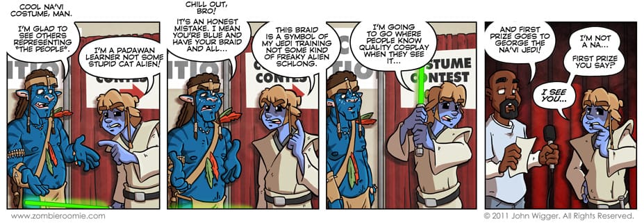 I've had the idea of having George and John attend a comic convention for a while. I even mentioned it back in October like I was planning on having it happen sometime in November... the problem was I didn't have a joke for the strip where they showed up at the convention... there was no lead in. I solved that by ditching the idea of having one all together. Bam, George is just at the convention. Wednesday we'll continue con stuff.