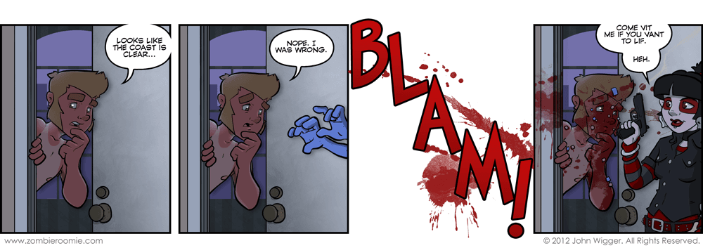 When I wrote out the notes for this arc this and a few other big moments were specifically designed to hi-light the girls of the cast. I'm not doing it just to pander to the female readership of ZR... How you doin'? No, I'm doing it because it's time they had their time to shine. And everything they're doing is in character for them which also really pleased me when I came up with the plan. For those of you too young to get what Zoey is saying, here's the relevant scene that's she's quoting.
