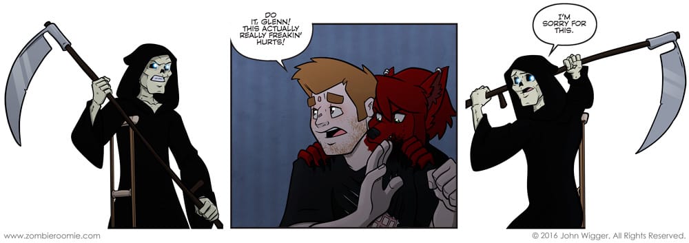 Glenn was super fun to draw in this strip. I really dig his two emotions in his solo panels. Things that also excite me are happening next week in ZR. I've had events that will appear in these upcoming strips planned for over a year. I really want to tackle them and do it justice.