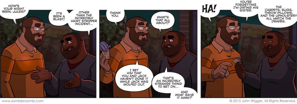 I changed up Jules a little more since I wasn't as happy with his look as I wanted to be. He probably has had more changes in the smallest number of appearances than any other character. I think he's pretty close to where I want him to be now though. This strip basically comes from people asking about it in comments on Facebook. Jack is still pretty reserved about being a wolf around Jules and Jules still is getting used to the idea of the supernatural world. We'll get back to Jack's "party" next week but there's some silly stuff coming up at Jules' that we need to address before then.