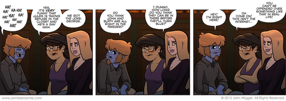 This week might end up being all at this party since it's what I have semi-planned out in my brain. Plus Lyn needs a minute to think after the last few strips. P.S.: I know they didn't mention Drew/Bum. That's on purpose!