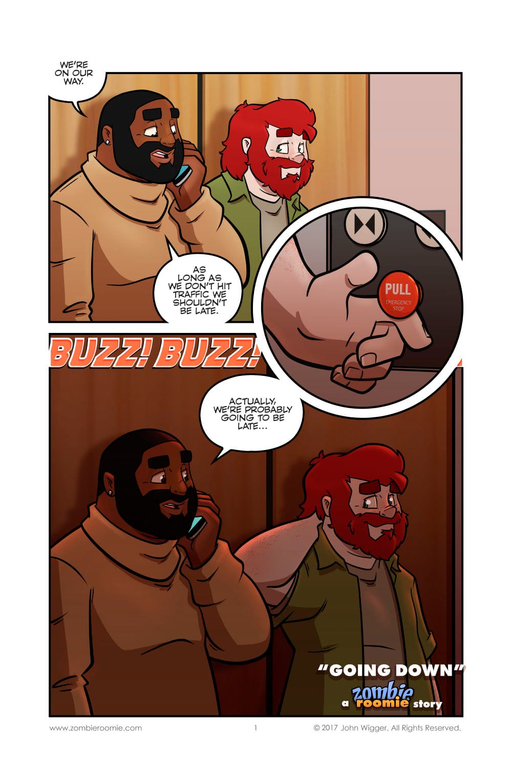 Page one of the Jack and Jules story. There will be seven pages in this story by the way. I don't know if it's a trope of mine or I just gravitate to starting longform smut stories off in elevators... at least all of the sexy times happen in the elevator this time. Page two will begin the nudity on Patreon.
