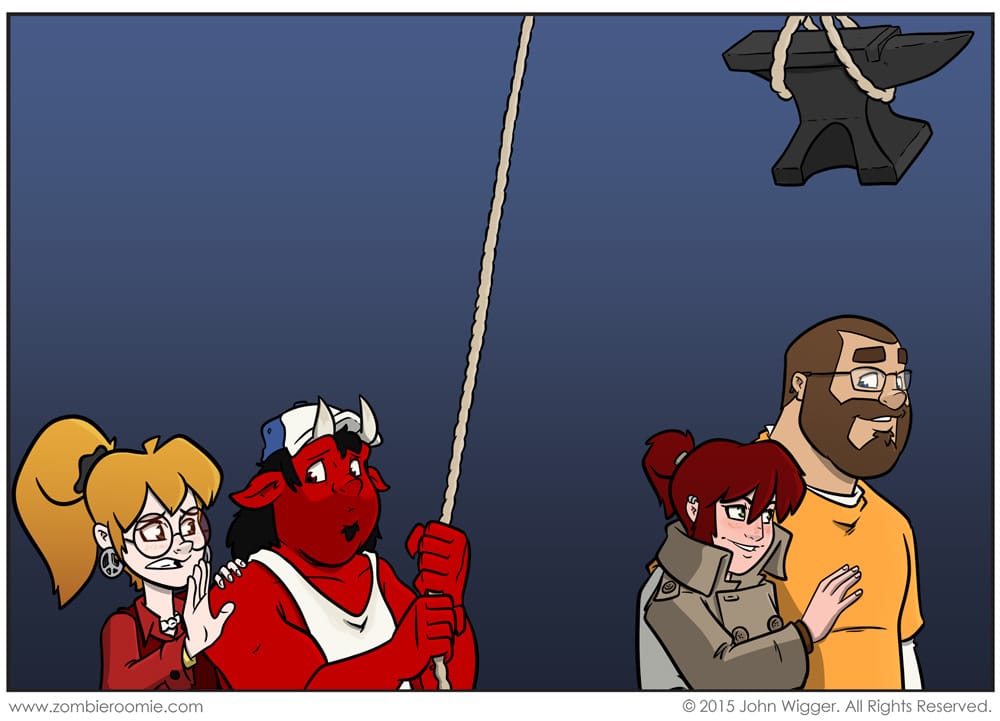 I just wanted to get to the part where the fat demon tries to kill John to win the affection of Valerie. We'll just assume that Valerie didn't give John any important information since she's actually working for the folks kicking Buffy and Drew out of their apartment. More on them and why Hell has bought an apartment building next week.