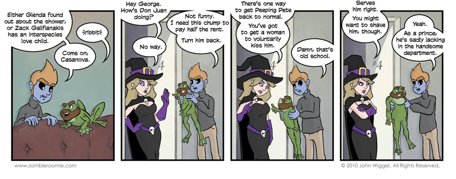 I'm pretty pleased with how Glenda's redesign turned out. A lot of her look is based on her old version, but, I've just updated her to feel more like the current style of Zombie Roomie. She's also got the most curves of any of the female characters that we have. Also, frogs with beards are hard to draw.