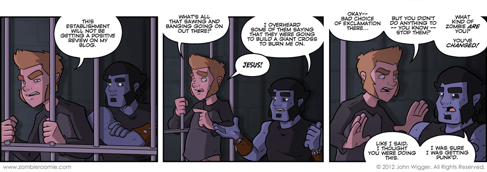 There we go... we're finally getting to what the Closed Casket Clan has planned for Robert. I'm not exactly sure how many more strips will be required to finish up the arc, but I'm thinking we're at least half way through. I'm going to sit down and plan out the rest of the arc from the outline I have and see if I can't get us there sooner rather than later. I have a pair of story arcs that tie together that I have to have done by the end of October for the comic's third calendar anniversary special event thingy. So I need to make sure I have the time to do them and not miss it!