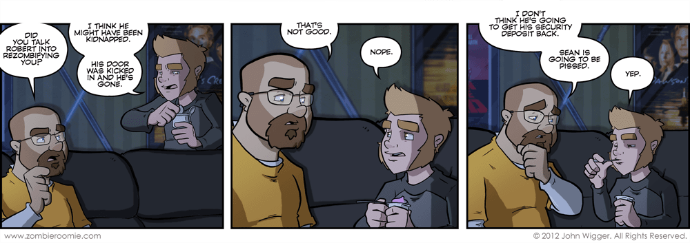 *John from the future here, as I'm reuploading these, I remember that I was watching Burn Notice while I drew this. That's why George is eating yogurt.