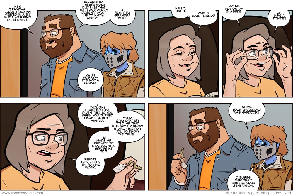 In the first draft of this strip, George was going to pull an "I'm out!" like John had in the last arc. In the end I thought him taking jabs at John was funnier and it meant I didn't have to come up with a reason for him to come back for the next part in the arc.
