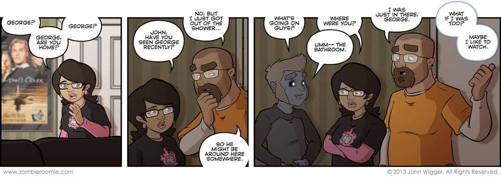 I'm working on Lizzy a little still. I'm trying to get her where I want her look to be. It's a bit closer in this strip, but I still have a little bit to go. Panel 3 is pretty close, but I still want to push her curves a little more. When I introduced her, she was a lot thinner... but as I've figured out what role I want her to play-- adding a few pound to her design makes sense to me. I've mentioned that I have wanted to add a plus sized girl to the strip... but I didn't want her to come across as that's just her thing. I want her to be a character first, but have a shape that's different from Glenda, Zoey, or Lyn. If I can do that and make Lizzy even more special at the same time, that's a win/win.
