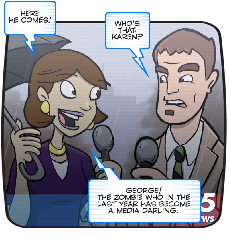 Corey the barista shows up as the male television personality. He either gets a better job or is only showing up in a dream... time will tell.