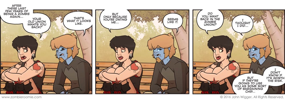 I have had a handful of strips take place on the bench in the park but the background was getting really dated. When I decided to put this strip in this location I wanted to update it so I put in a bit of effort to bring it up to a more current standard. Then I proceeded to make sure you didn't see hardly any of the work I put in...