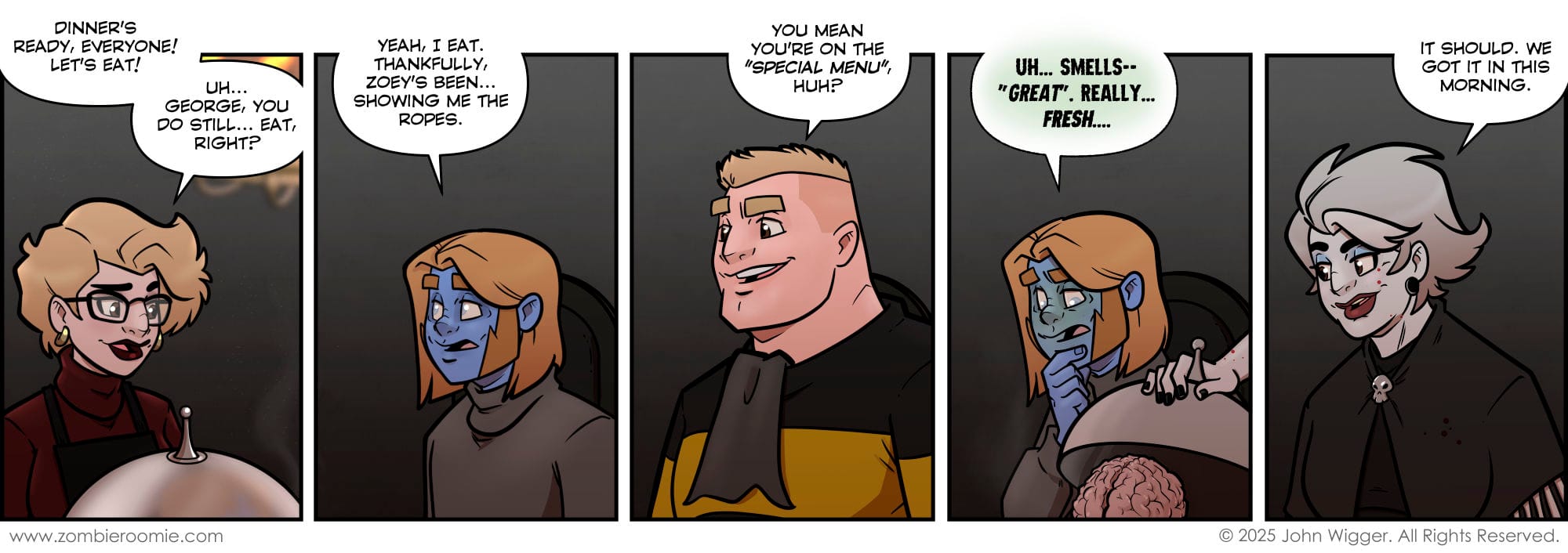 We finally get to a reveal I've been wanting to have happen since George has become a zombie-- in this timeline.