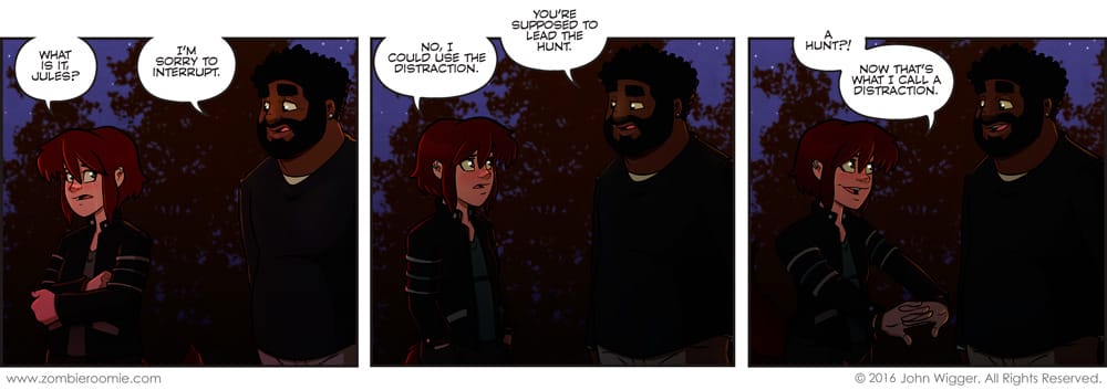 We're basically done with the family drama aspect. I mean it'll come up again in future stuff but the arc is wrapping up and we're barrelling toward the end and with that the hint of where things will go this Summer. I wanted the person who came to get Lyn be a known supporter of hers and since Jules had the strip where he mentioned he'd be proud to vote for her, he seemed like the right choice. It could have been Gramps, but the way I figure he's basically done with the actual goings on of the pack now... so I didn't want it to be him. Also, I know a lot of folks aren't happy with Lyn's dad right now. That's fine. It's how it was written. I wanted Lyn to be put in a no win situation... she'll end up becoming stronger for it. It's character development and growth.