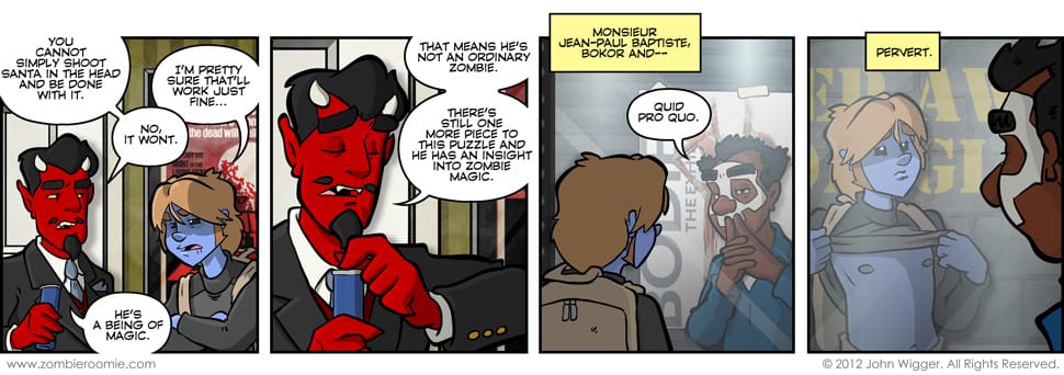 Monsieur Jean-Paul Baptiste was jailed a while ago. For those of you new to Zombie Roomie or those who have forgotten Jean-Paul Baptiste is a bokor who informed George he didn't have a soul, which lead him on a wild goose chase around the world.