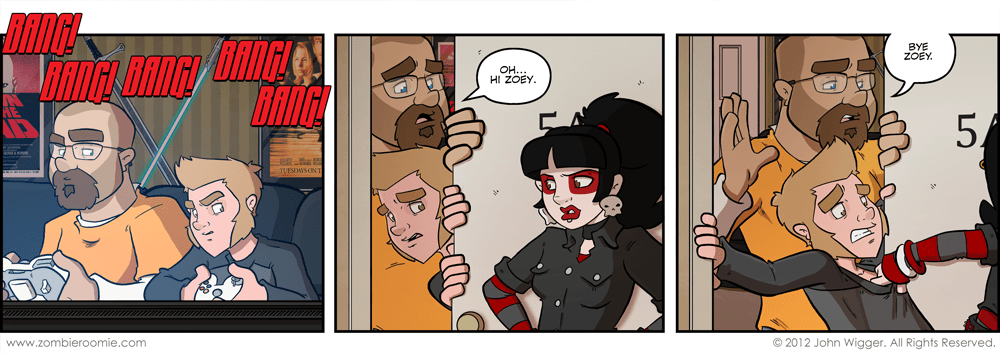 We're starting off the next major story arc with a little bit of "What's up with Zoey?" My plans for the next month or so include several stories that will be going on at the same time and we'll be jumping back and forth every once and a while to keep up with what everyone involved is up to. This week's strip are about George and Zoey. We're also slated for some strips including: John, Lyn, Lizzy, Glenda, and a few new characters before we're done. Everything is leading up to the 3rd anniversary at the end of October. I'm getting excited~!