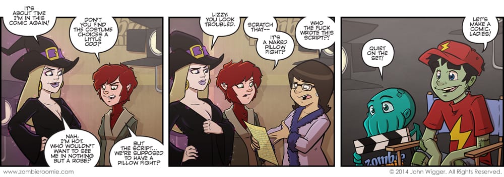 When the creator has writer's block... the characters are in control. Or something like that. I like the idea that the characters came up with the idea to write their own script... it's pretty goofy but so am I. I've said it before, but I want to have Lyn wolfed out more than she has, as I like the look. It's just hard to just flip the switch and have her as a wolf when she's typically only wolfed out when she's attacking something. I need to have something happen that flips the switch in her head that makes the character want to do it so it feels natural. As I'm writing this blurb about Lyn and her thinking I find it hilarious that it accompanies a strip about the characters doing things in a world where they know ZR is a comic. That's meta as fuck I tell ya.