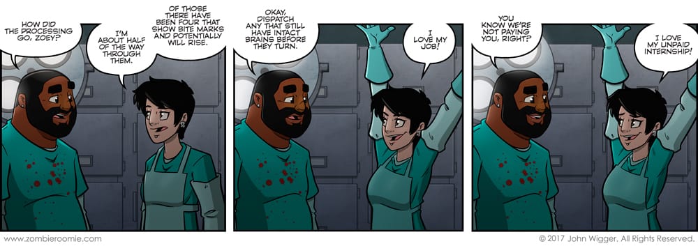 Zoey is an expert when it comes to zombies. She's grown up in a funeral home and been in a relationship since she was 18 (minus the time George and her were broken up after he was receased). Jules is taking full advantage of her skills.